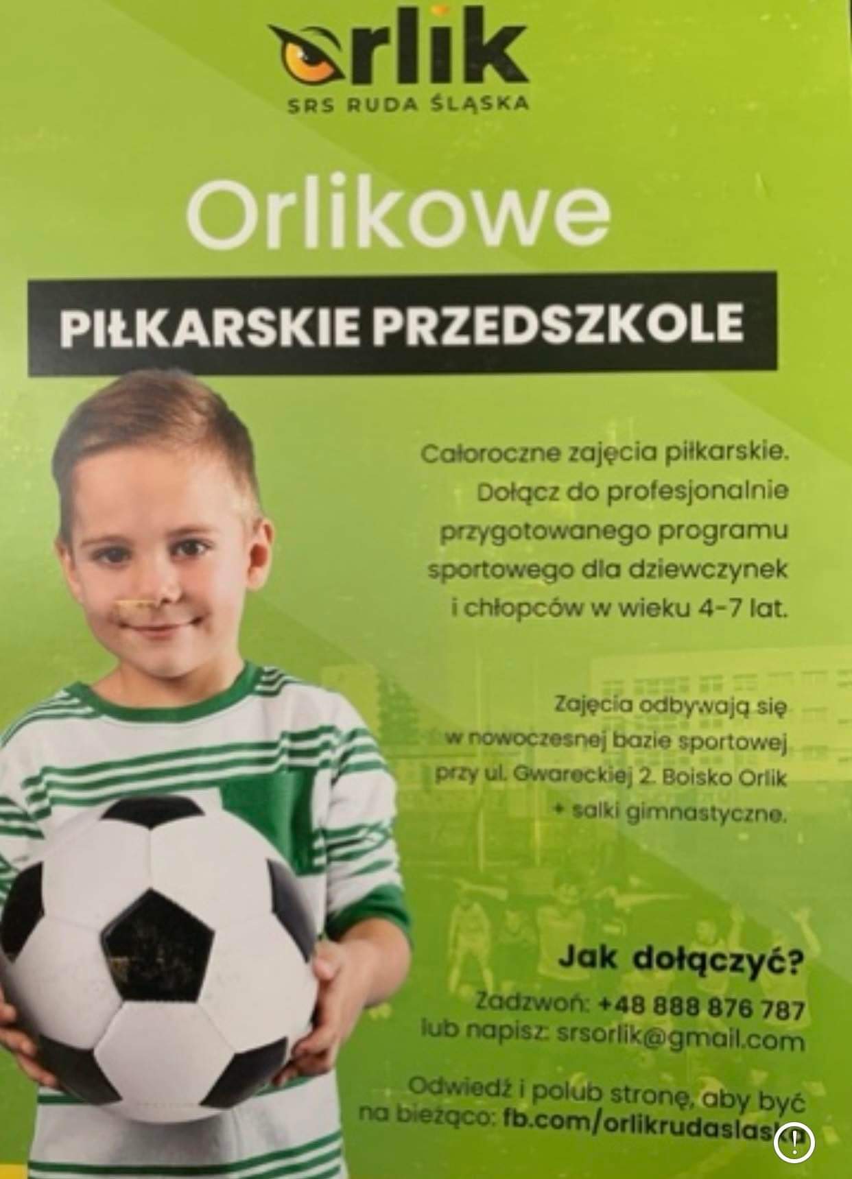 Serdecznie zapraszamy na zajęcia do Piłkarskiego Przedszkola Orlik