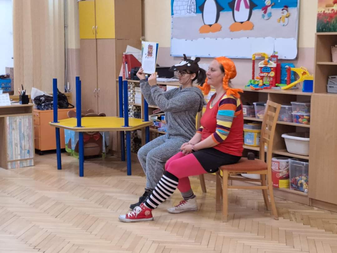 Dziękujemy za niezwykłe spotkanie Pani Ani i Pani Kasi ze Stacji Biblioteka, dzięki którym dzieci poznały bajkowe przygody Pipi Pończoszanki