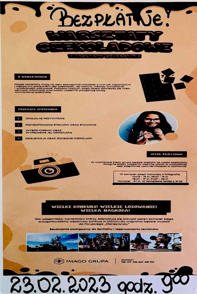23 lutego w czwartek w przedszkolu odbędą sie bezpłatne „Warsztaty czekoladowe”