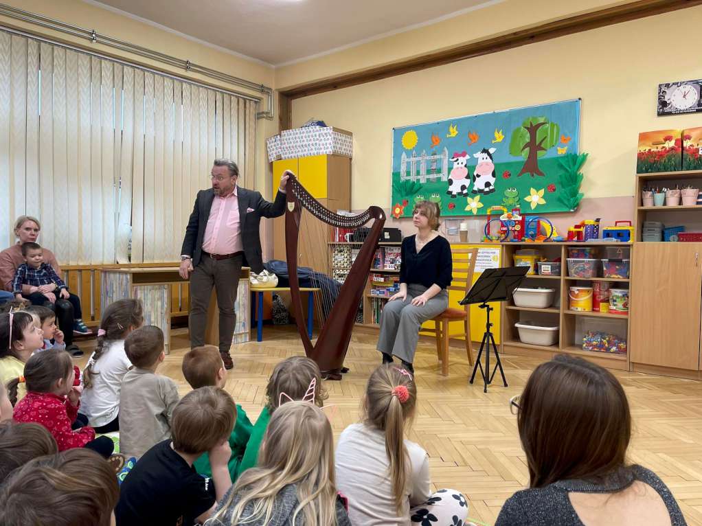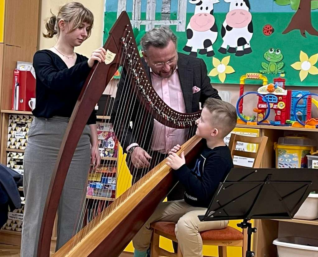Dzisiaj w naszym przedszkolu rozbrzmiała muzyka podczas kolejnego spotkania w ramach „Filharmoni przedszkolaka”. Dzieci poznały kolejny instrument „Harfę”