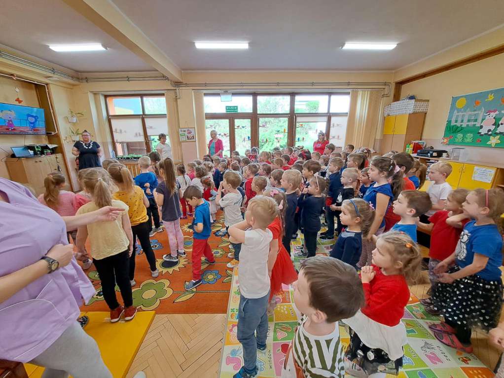Grupy Biedronki i Kubusie dały z siebie wszystko, była rozgrzewka, porządna dawka sportowych emocji i na koniec wspólny okrzyk