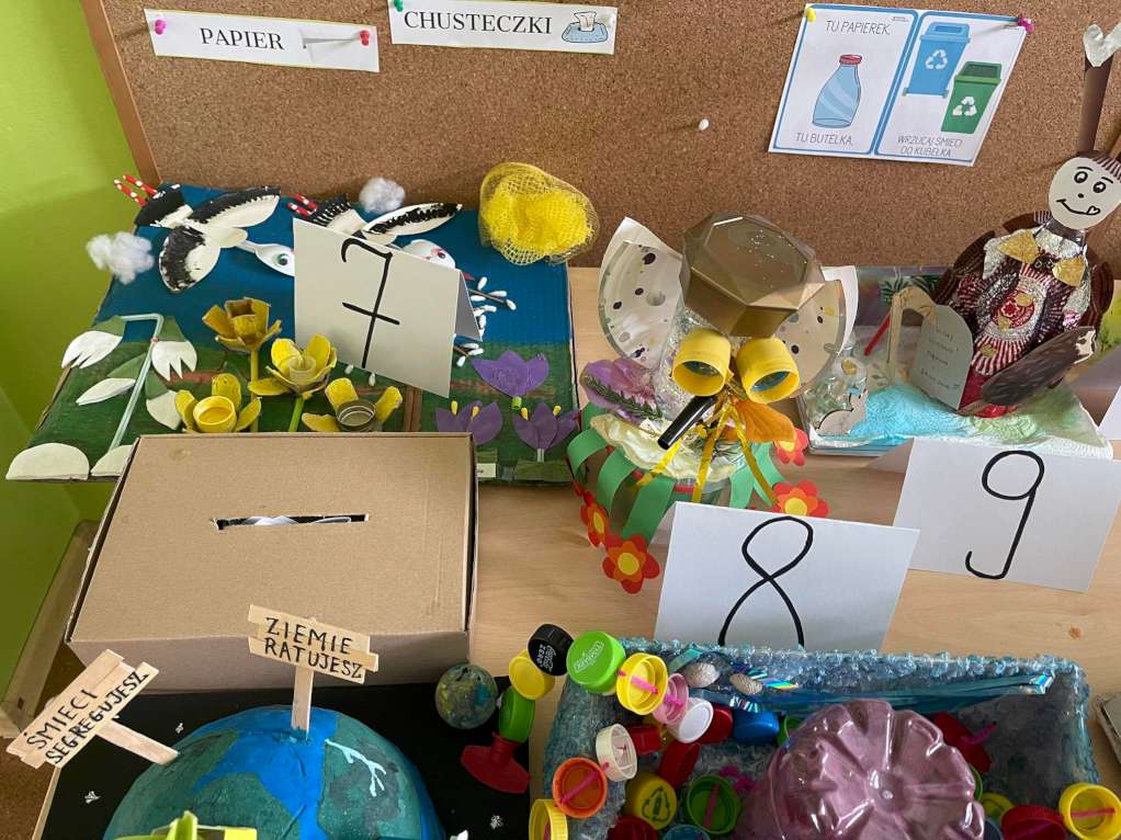Dzieci wzięły udział w warsztatach ekologicznych, sprzątały teren wokół przedszkola oraz rozstrzygnięto konkurs ekologiczny „Odzyskomania”. Wszystkim rodzinom gratulujemy i dziękujemy za udział w konkursie