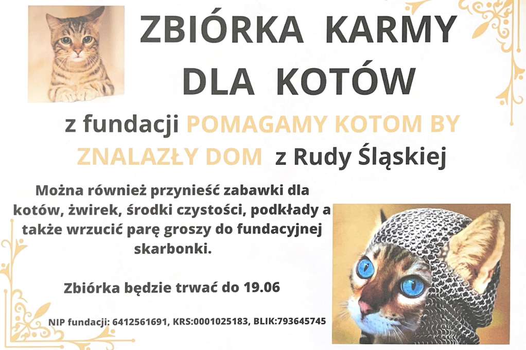 Zbiórka rzeczowa oraz pieniężna dla Kotów